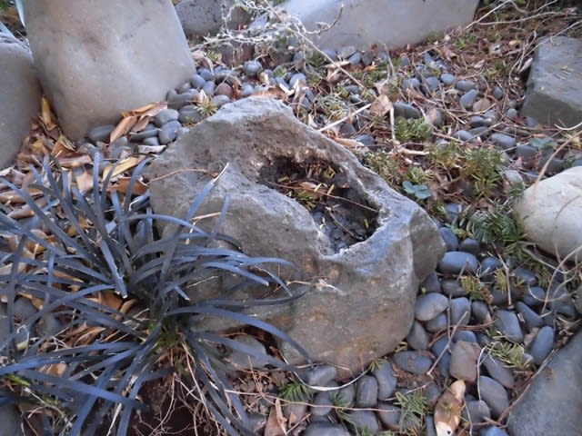 昔、庭石にノミで小鳥の水浴び用の小池を彫ってやりました。