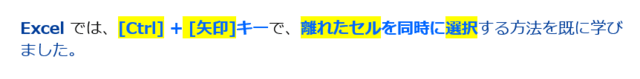 ところが Word では、連続した「文字」または「行」単位は簡単にできますが、文字列を打った後でまとめて任意の範囲選択をするにはワザが必要です。試してみてください。