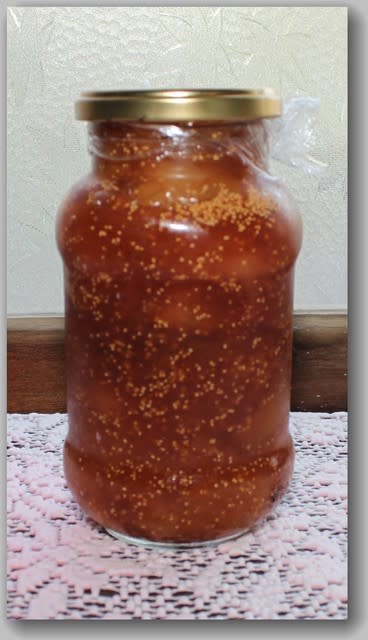 ジャムは三温糖を果肉重量の概ね1/3だけ使い、貯蔵瓶を熱湯殺菌し、熱いうちに充填密閉することにより、半年後に開けても腐敗することはありません。