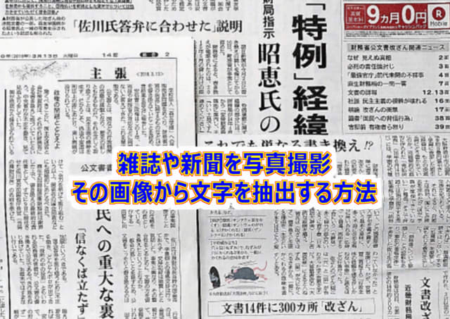スマホの場合は、Android系は、テキストスキャナー [OCR 日本語対応] を、iOS系(iPhone, iPad) の場合は、Microsoft Office Lens|PDF Scan がいいのではないでしょうか?