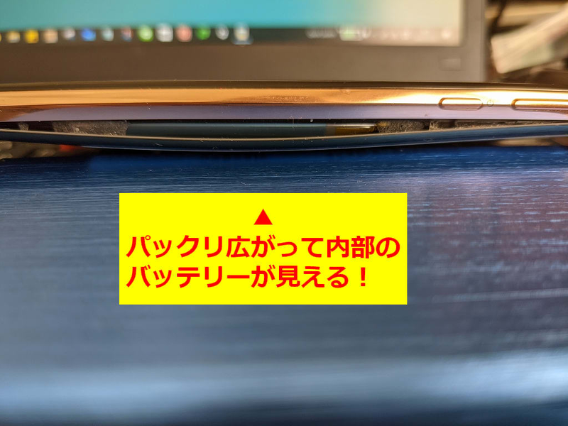 使用上はなんら問題なく普通に使えていますが、横っ腹に大きな亀裂のように口を開け、内部のバッテリーが見えている状態ではあまり気分のいいものではありません。