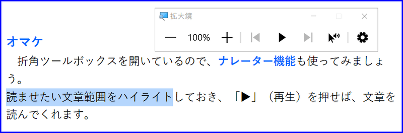 ②「▶」(再生)を押せば、文章を読んでくれます。