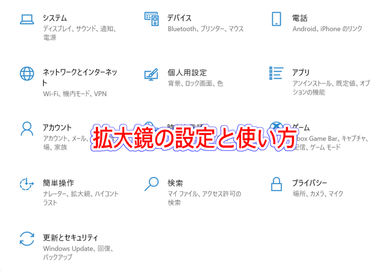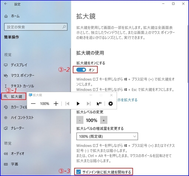 ②「簡単操作」(ナレーター、拡大鏡、ハイコントラスト)を選択します。
