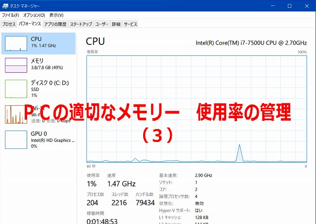メモリー管理をしても、明らかに物理的にメモリー(RAM)容量が足りない(4GB以下)場合では、いずれ困ることもあるでしょう。