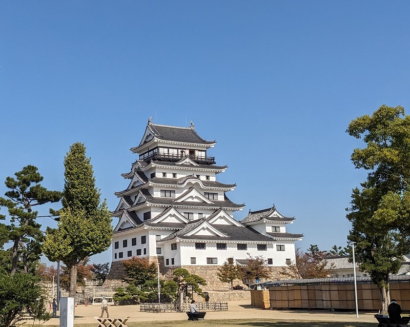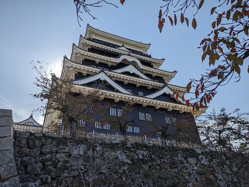 今回は伊賀上野城を含めて3か所の城巡りになりましたが、彦根城・福山城はホテルの部屋の正面で、特に後者は新幹線を挟んですぐ前に直線なら約90mで城内、天守閣まででも200m余りという近さ、両者とも夜のライトアップで美しい姿を深夜まで楽しめました。
