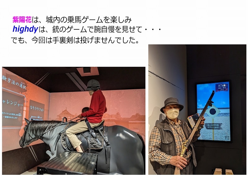 城見物の帰りにお礼に立ち寄り、次の行動を説明したら「えっ、僕の弟は広島にいます!」と。またまた偶然にも・・・、すっかり仲良しになり、二人に駐車料の1,000円分の代わりに、お礼として「何でも好きなものを買って・・・」と勧めたら、最初は辞退していましたが、男性がアイスクリーム。女性がジュースということで決着。その残りで私達までもアイスクリームを食べてお釣りが戻り、双方でハッピーになりました。