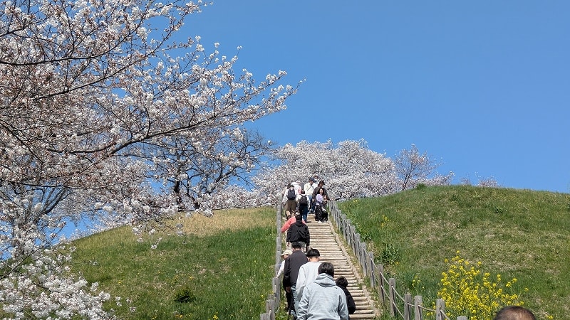 お目当ては丸墓山(まるはかやま)古墳 頂上の桜です。