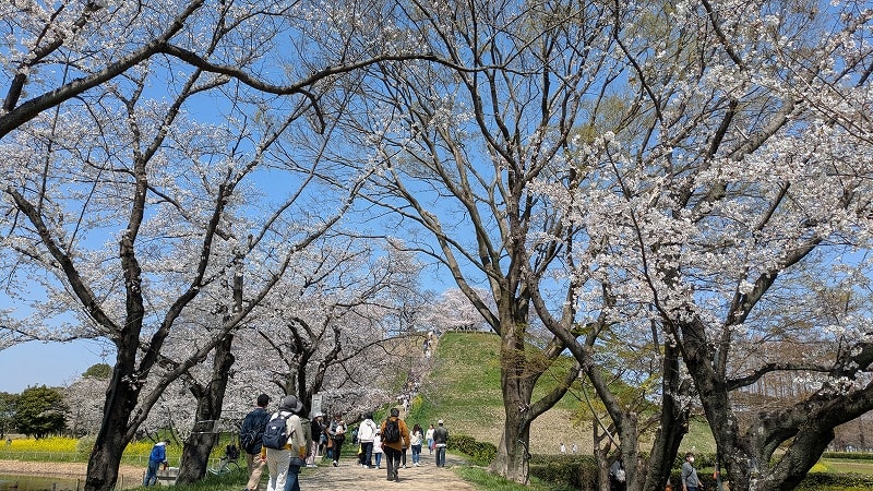 場所が広いので場所どりの心配がないのも嬉しいですね。それに都内の花見のようにお酒で大騒ぎをする宴会は皆無と言えるほどで、とても健全な花見です。